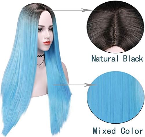 Lady Miranda Natural Straight Ombre Black To Blue Wig Middle Part Dark Roots Long Silky Wigs For Women Black Blue Buy Online At Best Price In Uae Amazon Ae